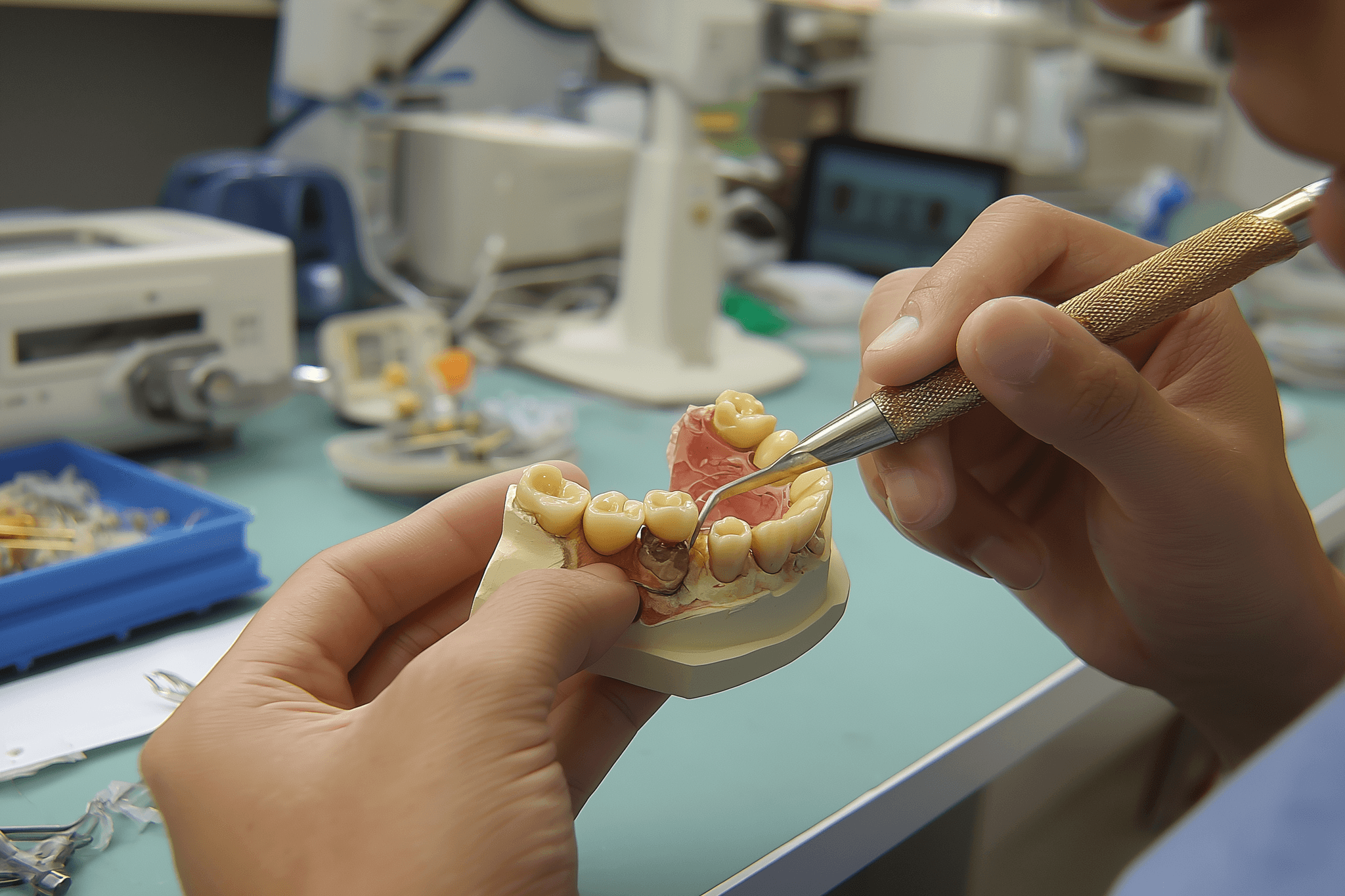 CAD/CAM 디자인 후 치과 기공센터의 전담 치기공사가 세밀한 작업 진행