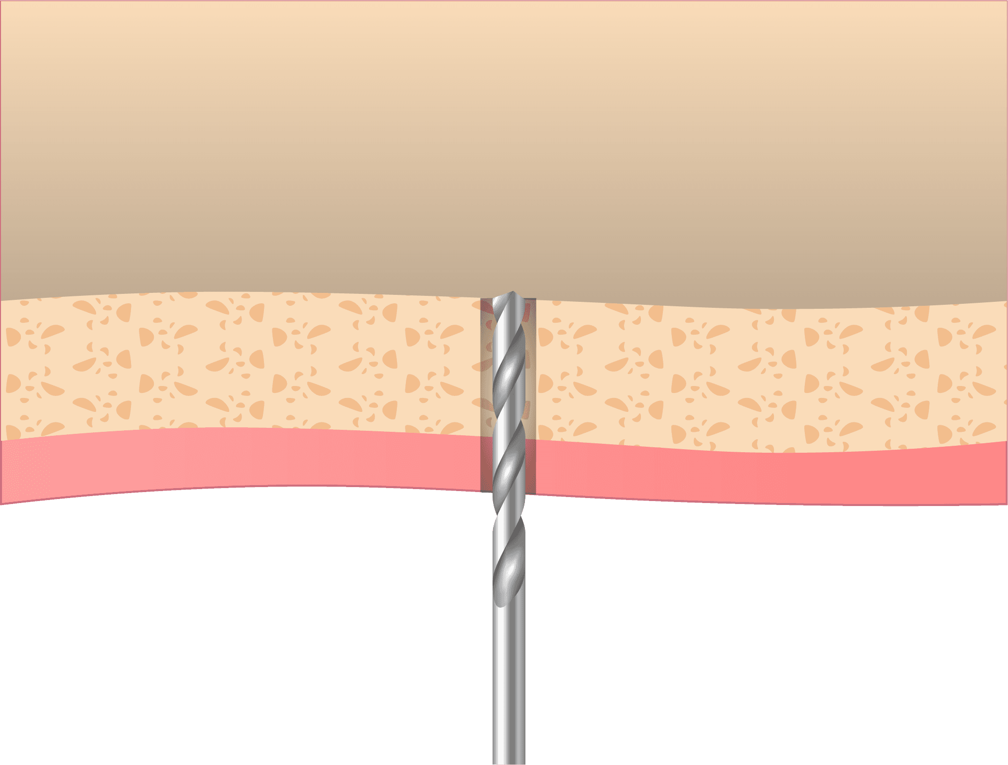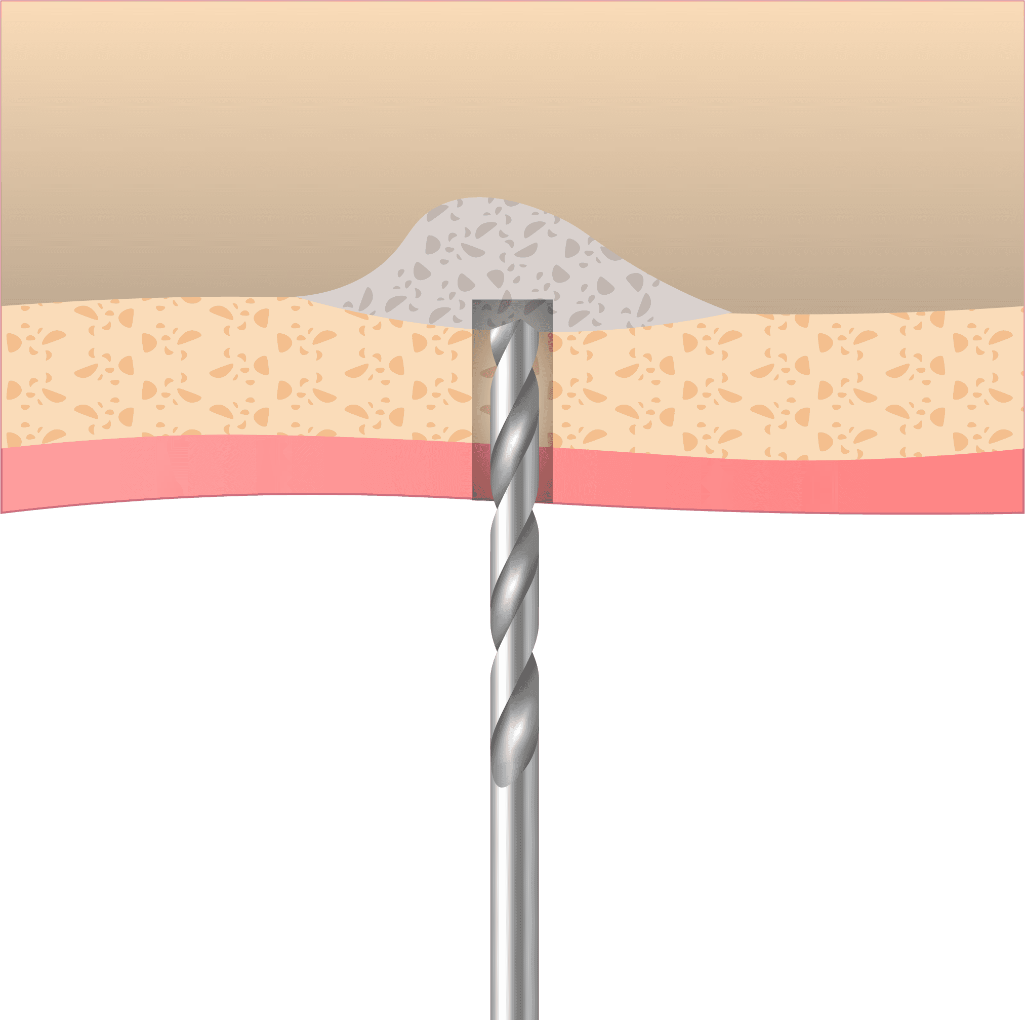 임플란트 수술 방향과 동일하게 아래쪽에서 접근하는 방법으로 기구를 이용해 구멍을 뚫은 후, 상악동 막을 들어올려 뼈이식을 하고 임플란트를 식립하는 방법