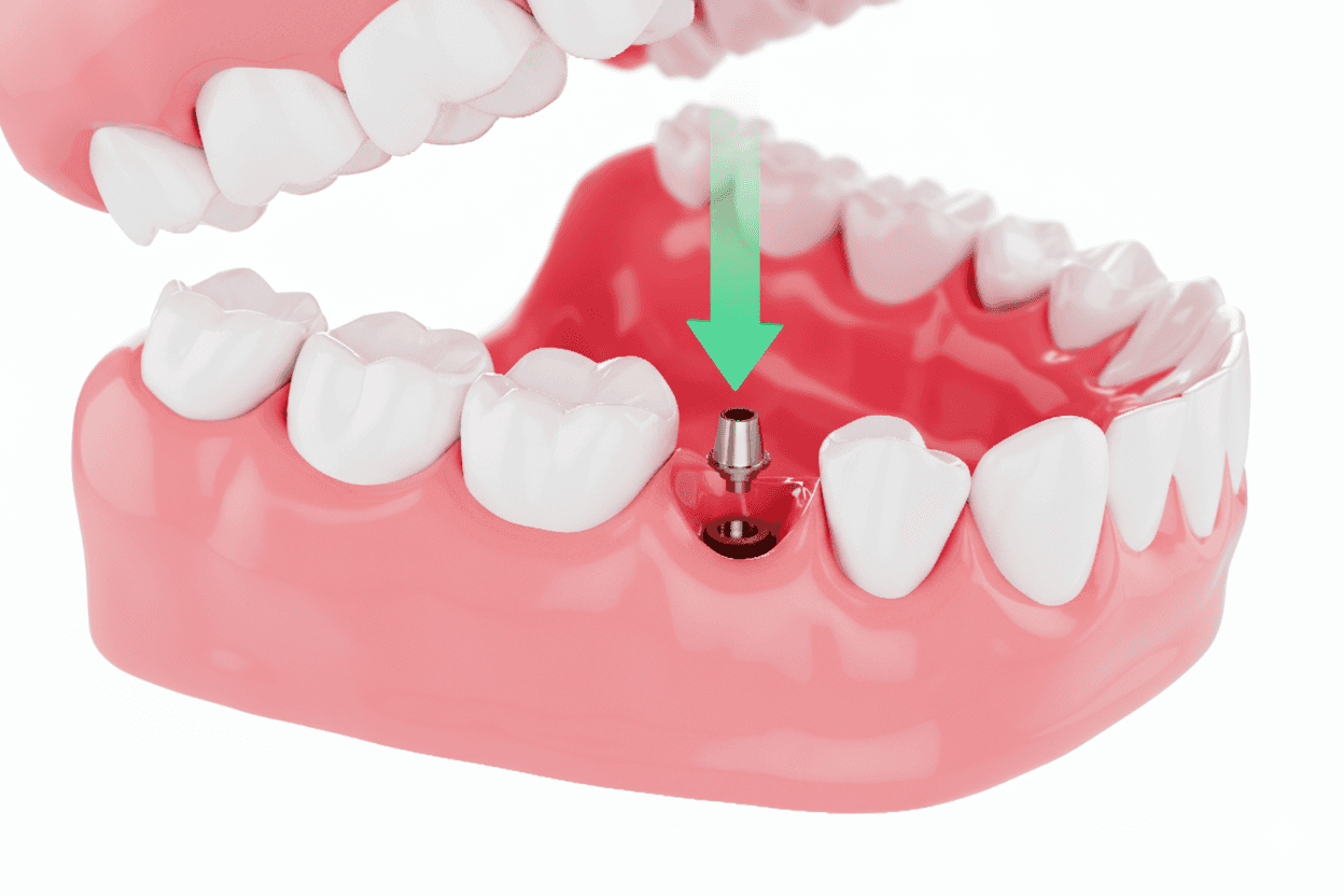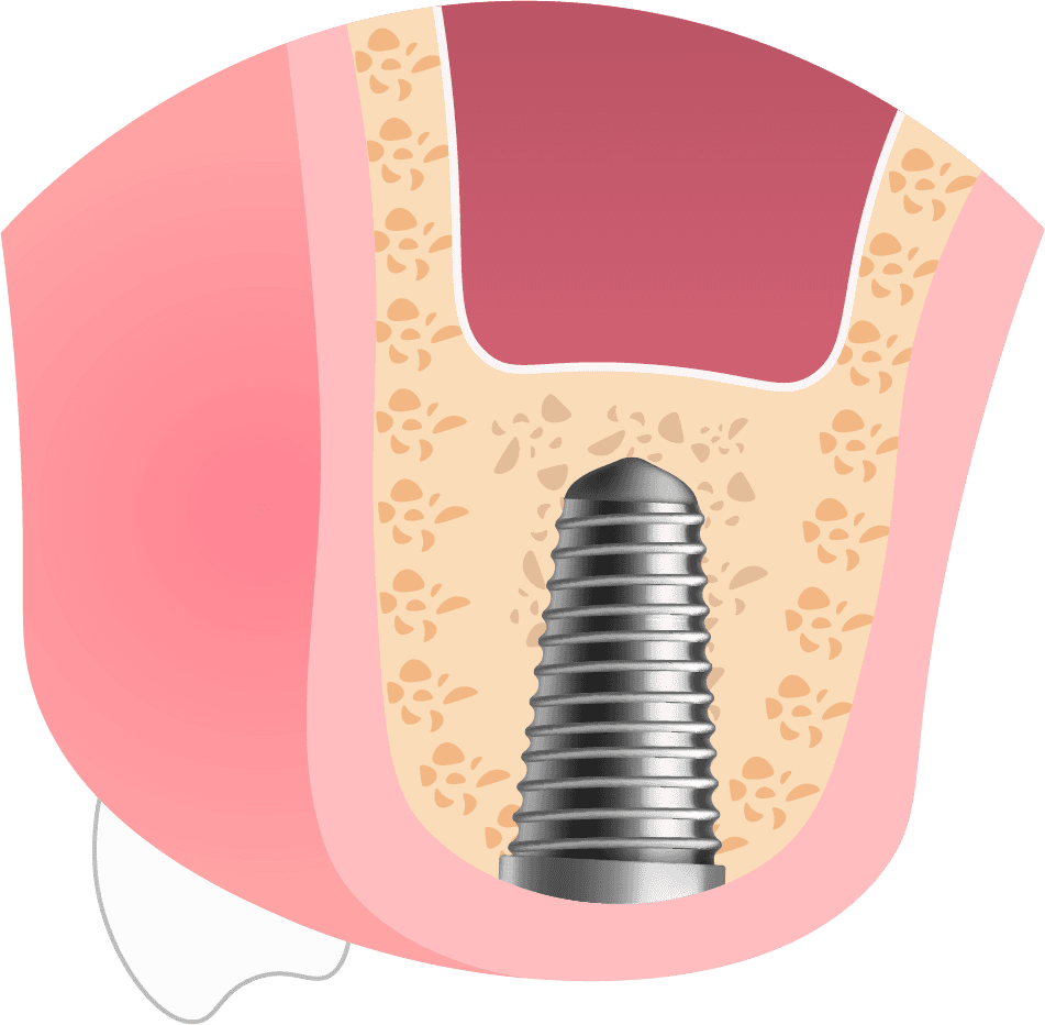 치료계획을 바탕으로 임플란트를 식립합니다. 이후 2~6개월의 치유기간을 가집니다.
