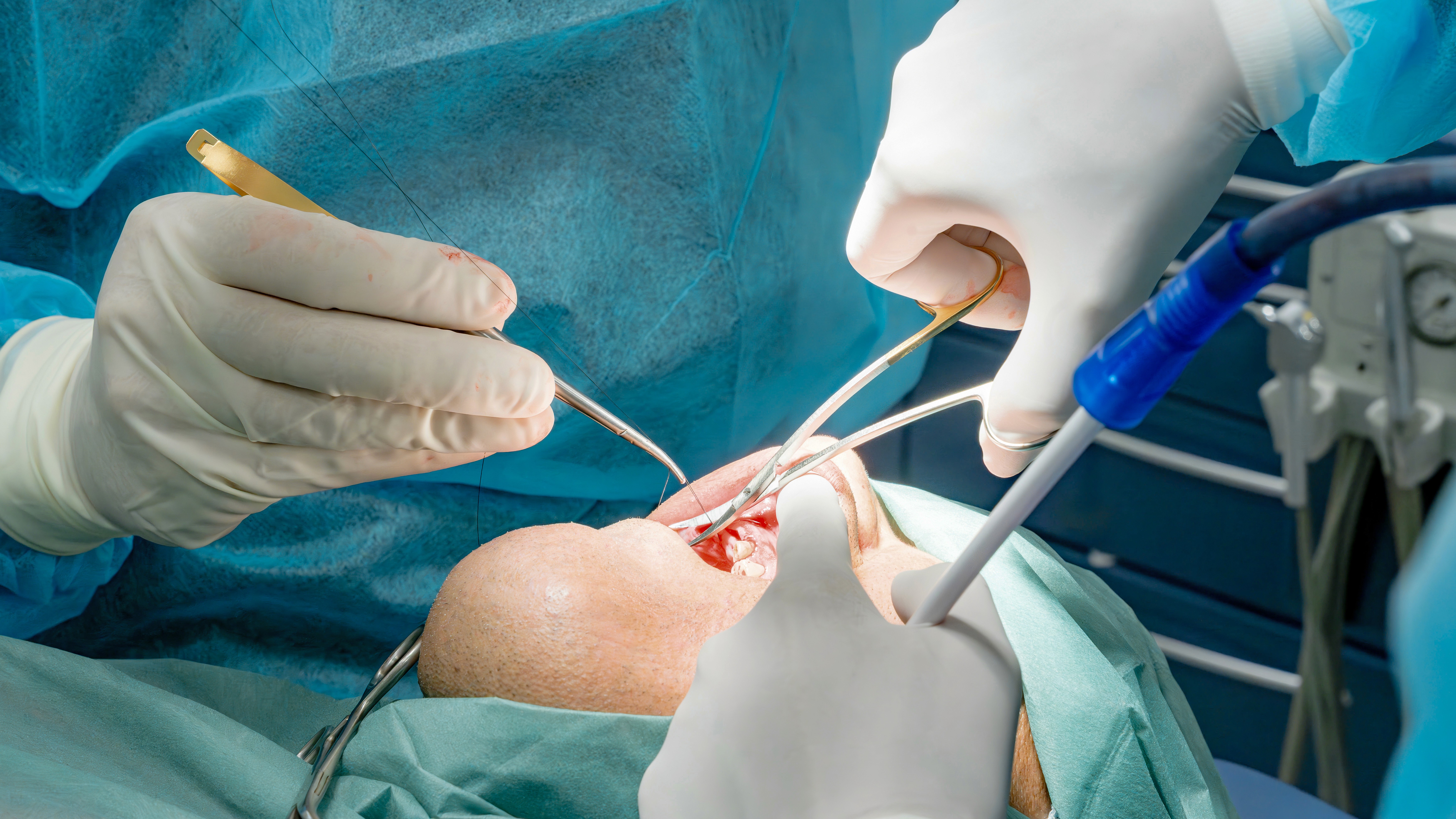 구강 내·외에 발생한 창상(찢어진 상처)을 봉합사를 사용해 봉합합니다. 세심하게 봉합하여 흉터를 최소화하고 감염을 예방하는 것이 중요합니다.
